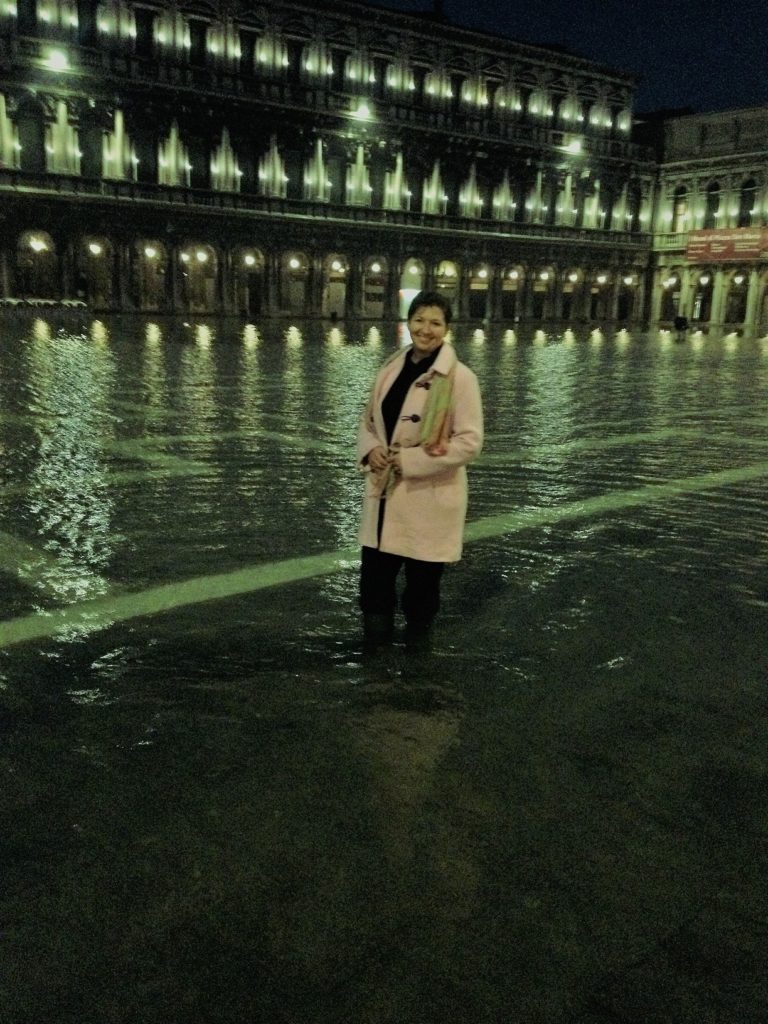 In Venice, my B&B provided rain boots and instructions to get up at 6 a.m. and go to St. Mark’s Square. Getting up at 6 a.m. is foreign to me on vacation, but we took the boots and the advice. We experienced what is called the Acqua Alta — an occasional phenomenon where Venice experiences a very high tide and flooding. We walked into St. Mark’s Square joined only by a few photographers and water to just below our knees. I am not sure what was more spectacular — seeing St. Mark’s Square empty or seeing the lights of the square glisten off the water.